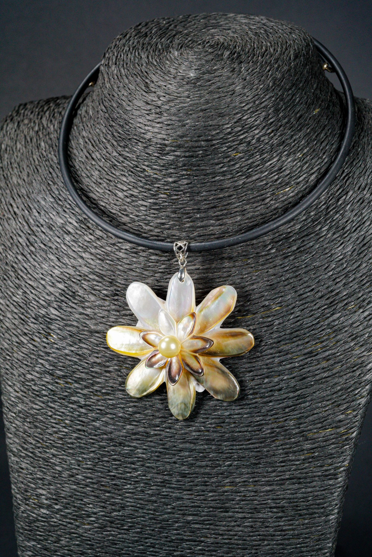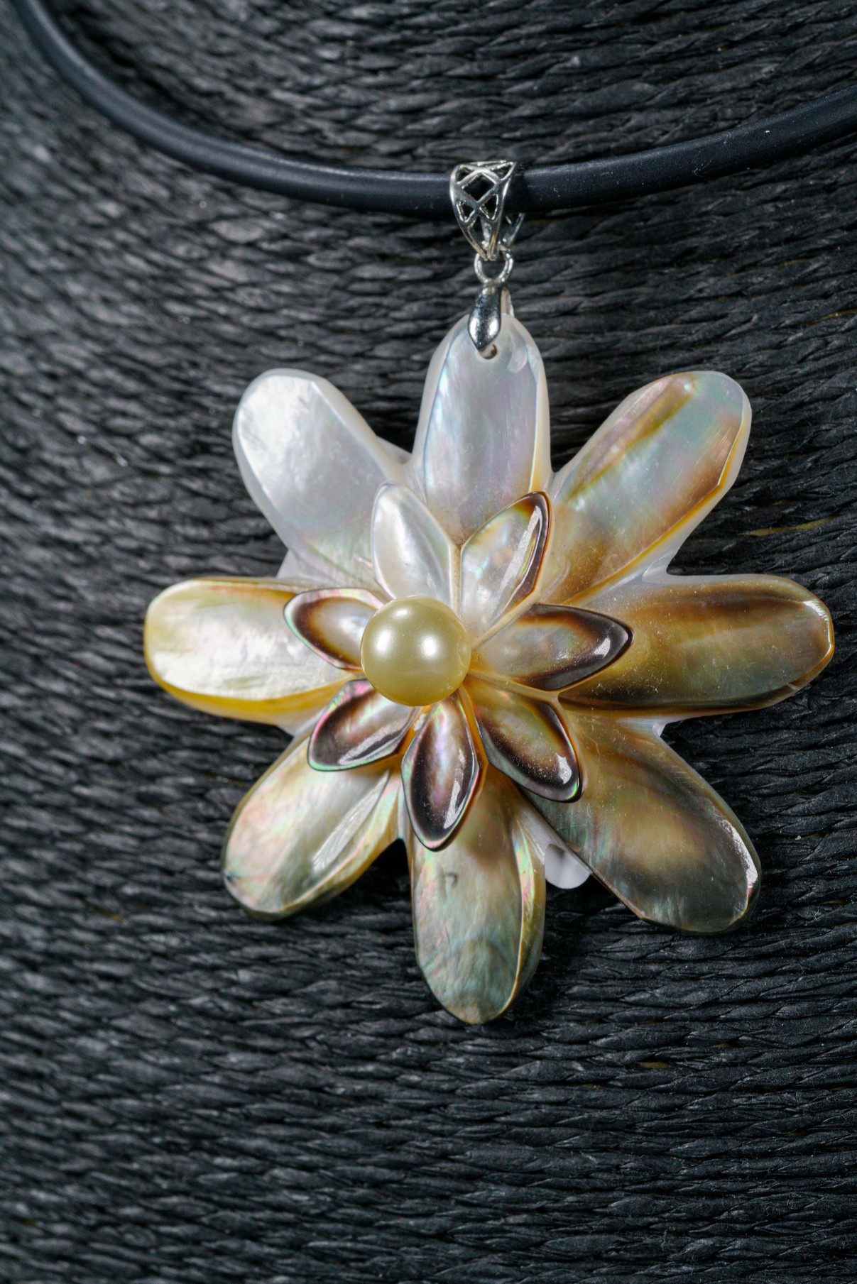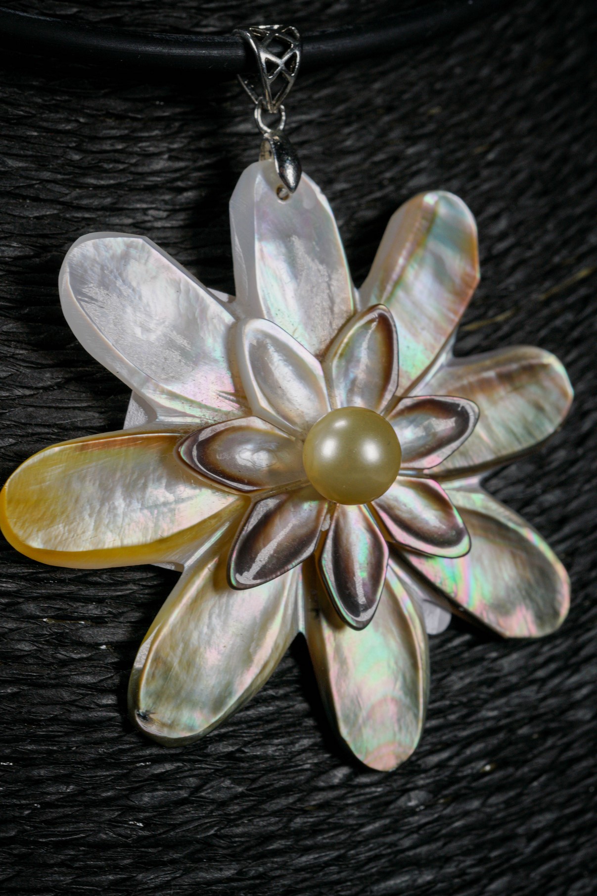 WEBJN96 DOUBLE FLOWER SHELL EITH PEARL PENDANT